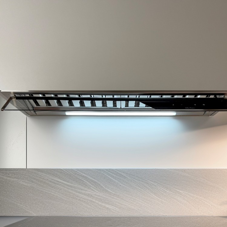 Built-in hoods designed to be perfectly integrated into kitchen projects where you don't want to interrupt the continuity and design of the kitchen cabinets, guaranteeing maximum extraction efficiency