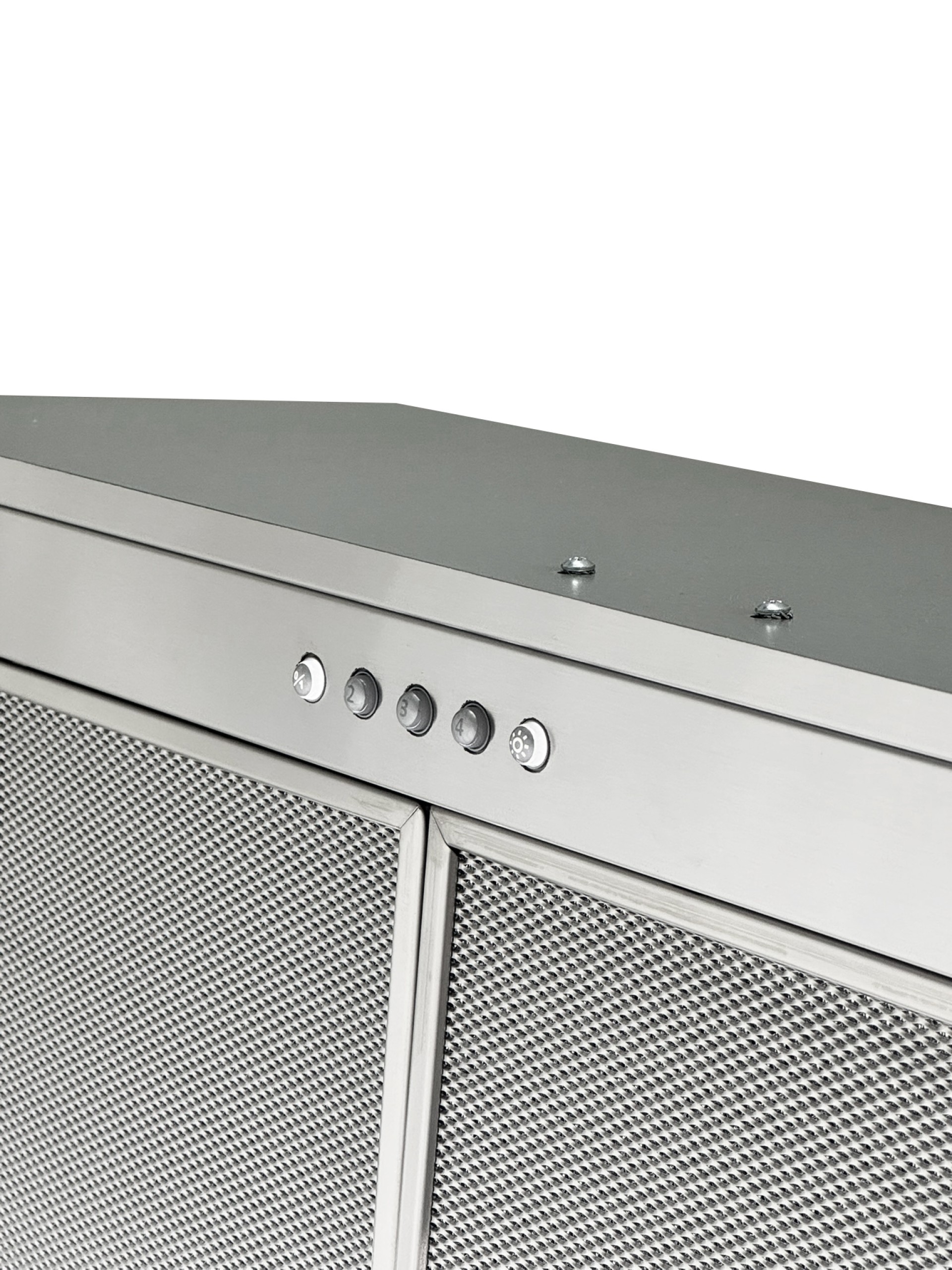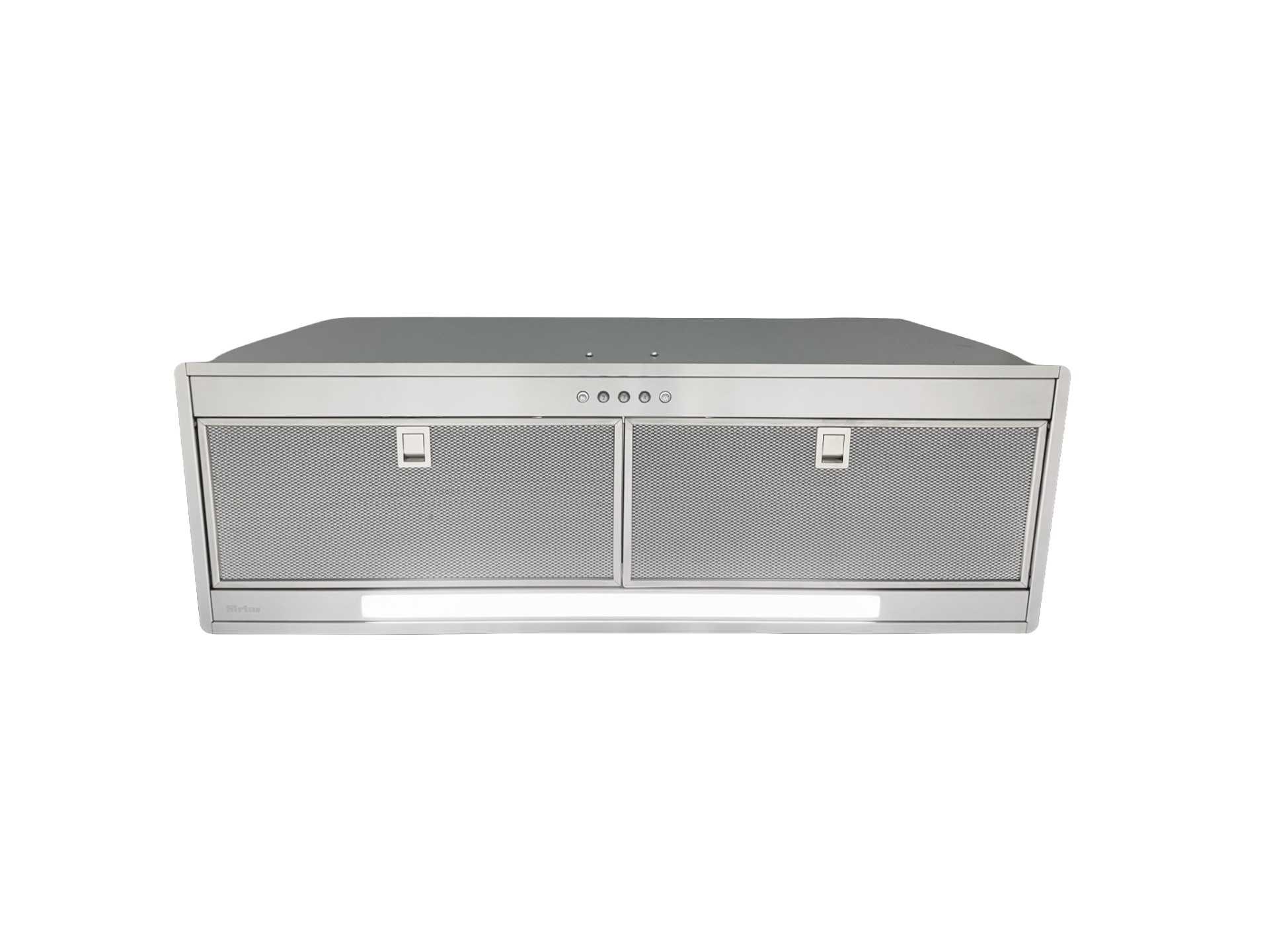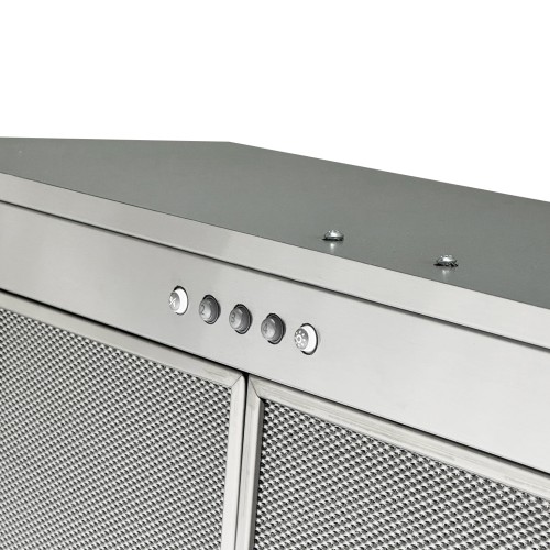 Stainless steel built-in unit with visible, removable and washable aluminium grease filters. Equipped with LED bar for optimal hob illumination and chrome push-button control panel.