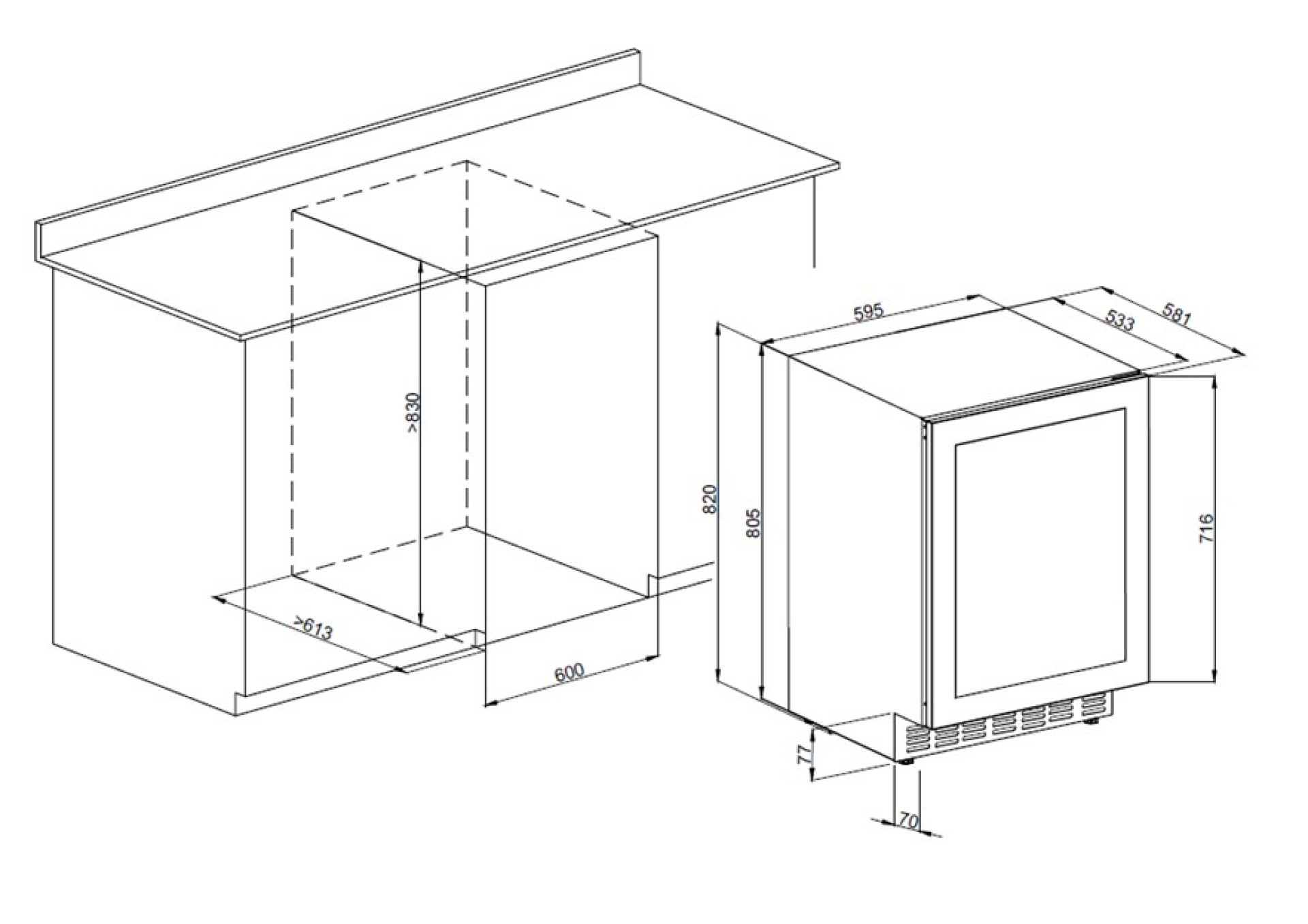 S-W2, a wine cooler integrated in the undercountertop with 2 temperature zones