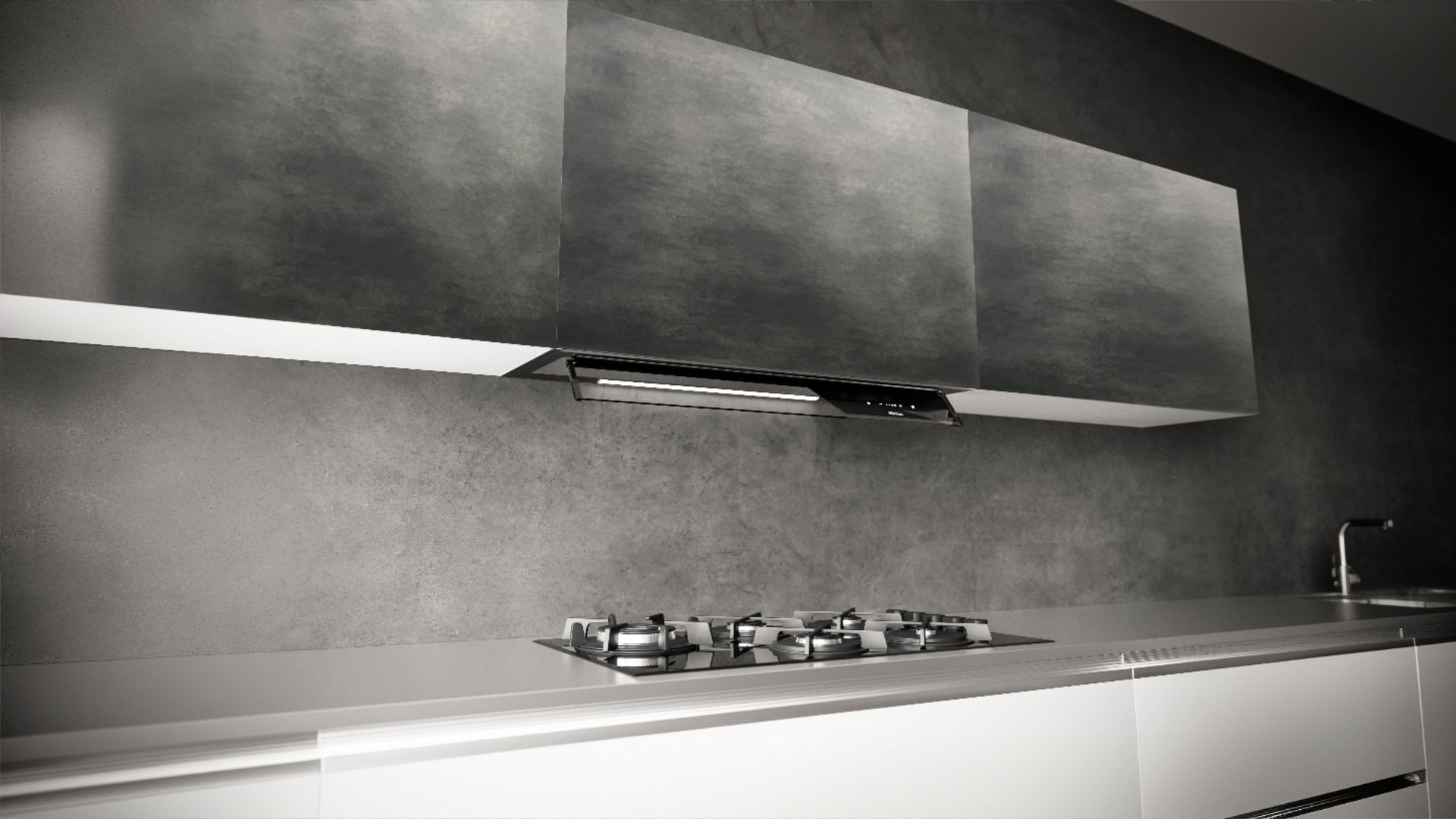 The finishes of Sirius cooker hoods: from matt black and white to PVD-effect dark anthracite